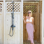 update! we've made our pareos 6" longer (now 76" x 44") to accommodate more body types when tying in the wrap-around column style we love.