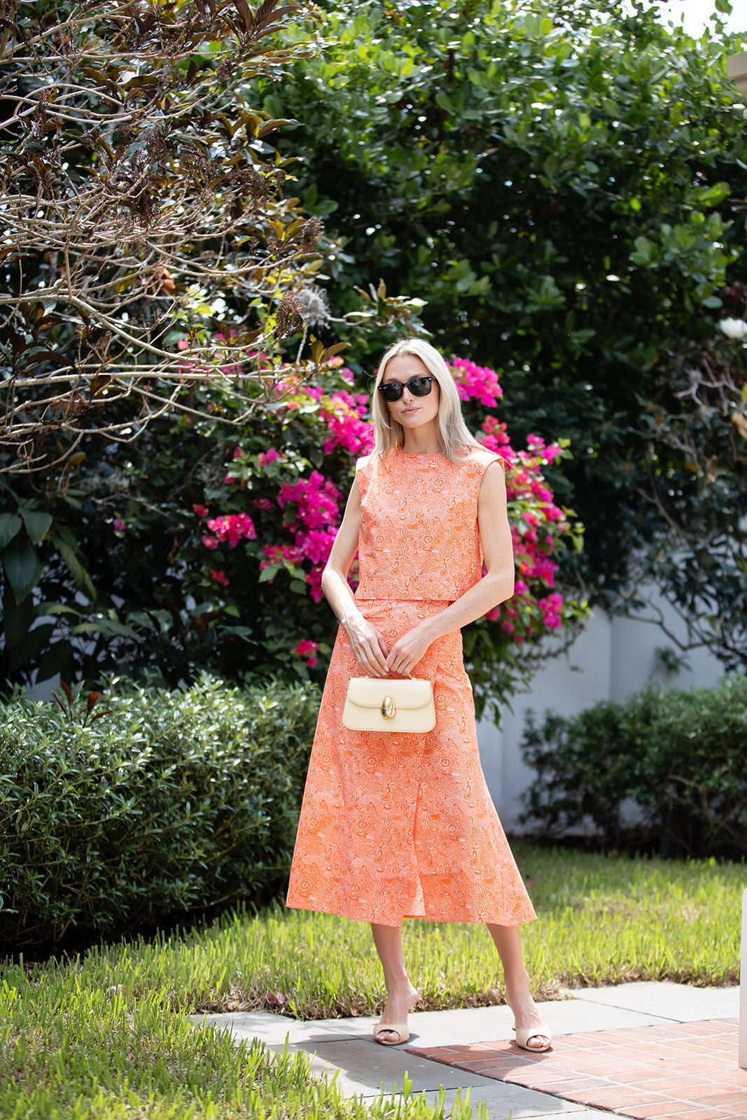Made of 100% cotton, the Park Ave Skirt is slightly A-line, with a button closure. Sits below the natural waist. Lined.