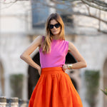 Meet the Tippi Top, our new sleeveless knit shell and the ultimate closet Swiss army knife. She's comfortably soft and fitted enough to dress up and tuck into high-waisted styles. Hits at the hip. Made of cotton viscose blended fabric.