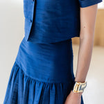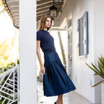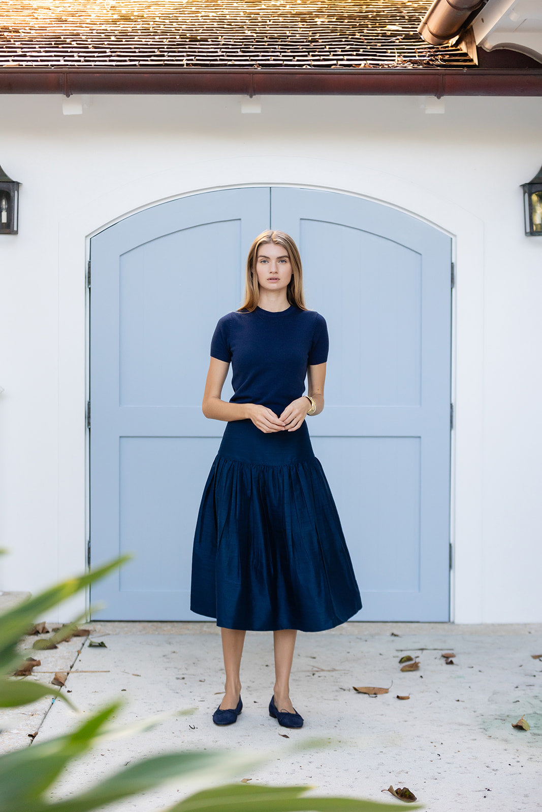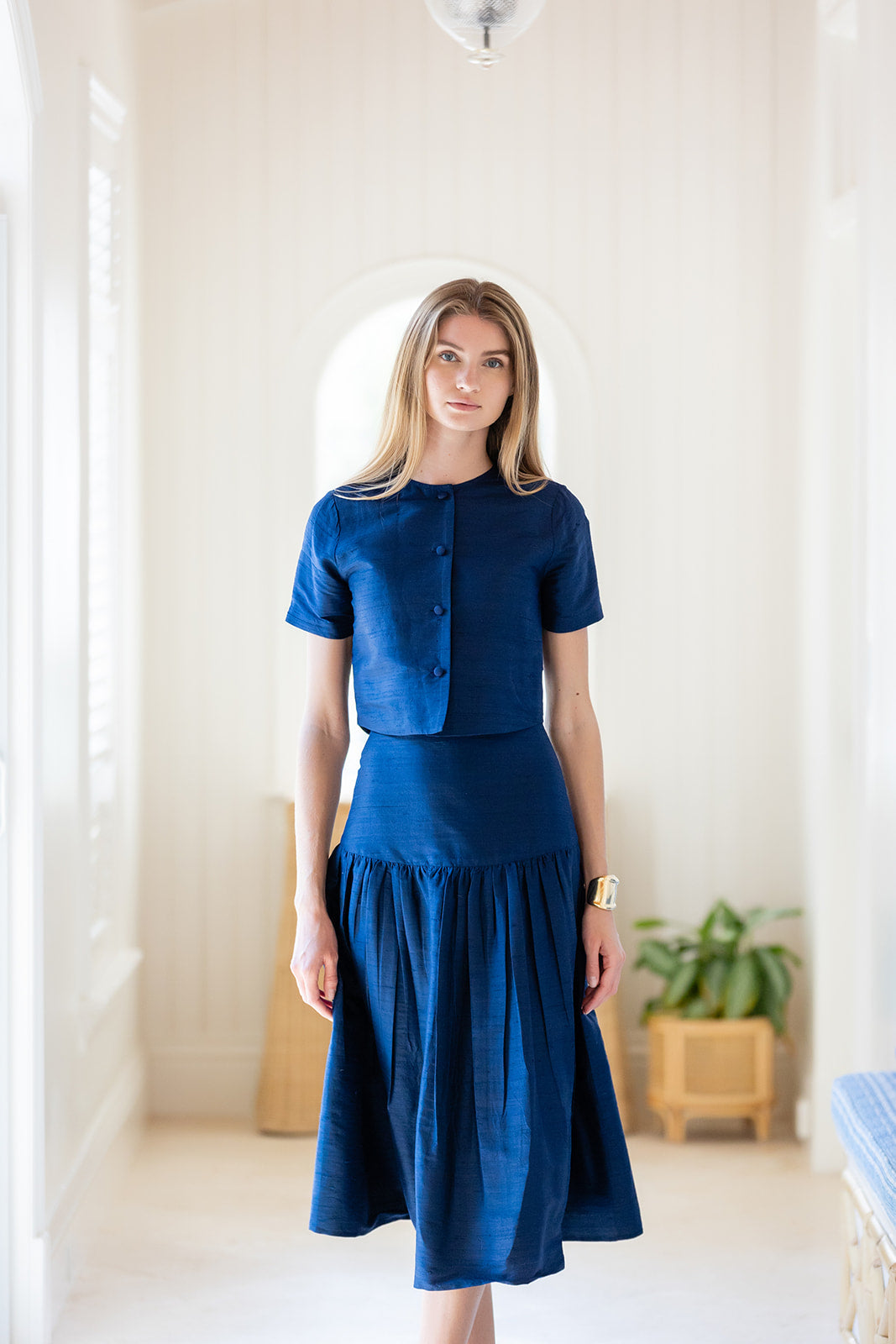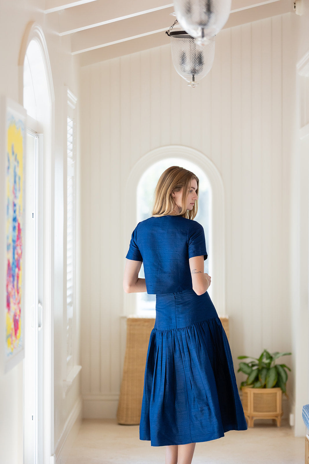 Meet the Circle Skirt, a drop-waist midi skirt, now in silk Dupioni. High-waisted to show off your waist, she's super flattering, a little fun, and can be dressed up or down easily. We love her with the matching Circle Top in Dupioni for an effortless set, or a Tippi and sandals for a more casual ensemble. Features concealed zipper closure in back.