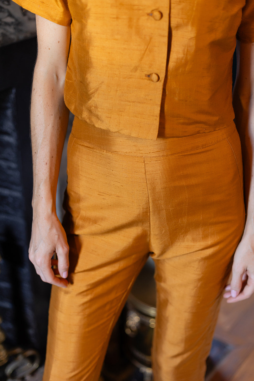 Meet the Jackie Pant in Dupioni silk, proof that sometimes our closet's best pieces are often the simplest. Inspired by *the* Jackie's affinity for a perfectly tailored cigarette pant, the Jackie Pant is the endlessly versatile pant your closet needs.