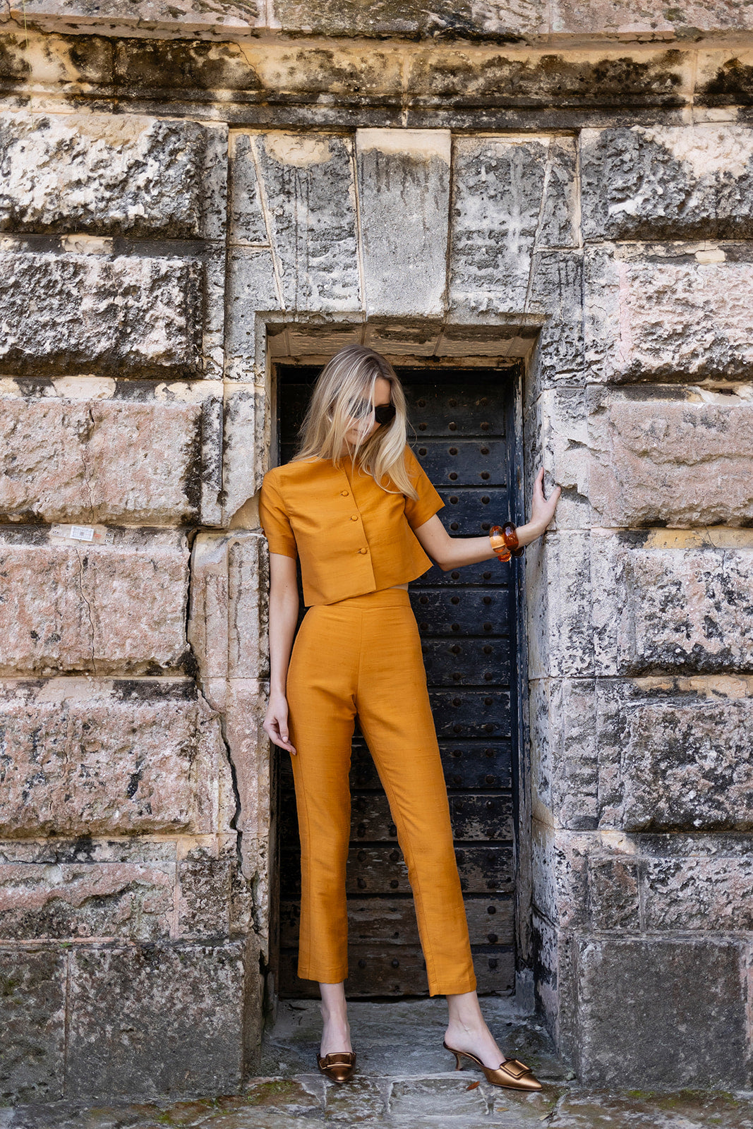 Meet the Jackie Pant in Dupioni silk, proof that sometimes our closet's best pieces are often the simplest. Inspired by *the* Jackie's affinity for a perfectly tailored cigarette pant, the Jackie Pant is the endlessly versatile pant your closet needs.