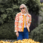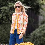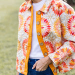 The Mackenzie Jacket is our newest quilted jacket perfect for those fall days when the temperature can't make up its mind. We love to throw it over a Tippi (+ a sweater when it cools down more) & jeans to add some polish to our go-to daytime look. Features a collar, floral-design stitching, and wooden button. Hits at the hip.