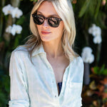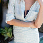 Borrowed from the boys, the JA Husband Shirt is inspired by men's oxfords & pajamas updated with feminine touches. Inspired by our mother's forever beach look (dad's shirt, pareo, sun hat), the Husband Shirt can be worn as a beach coverup for warm weather or as a shirt with jeans or Bell Pants.