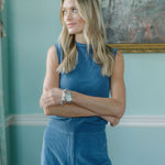 Meet the Tippi Top, our new sleeveless knit shell and the ultimate closet Swiss army knife. She's comfortably soft and fitted enough to dress up and tuck into high-waisted styles. Hits at the hip. Made of cotton viscose blended fabric.