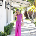 Meet the Tippi Top, our new sleeveless knit shell and the ultimate closet Swiss army knife. She's comfortably soft and fitted enough to dress up and tuck into high-waisted styles. Hits at the hip. Made of cotton viscose blended fabric.