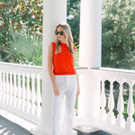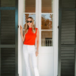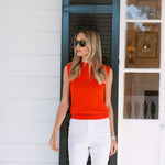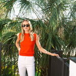 Meet the Tippi Top, our new sleeveless knit shell and the ultimate closet Swiss army knife. She's comfortably soft and fitted enough to dress up and tuck into high-waisted styles. Hits at the hip. Made of cotton viscose blended fabric.