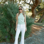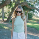 Meet the Tippi Top, our new sleeveless knit shell and the ultimate closet Swiss army knife. She's comfortably soft and fitted enough to dress up and tuck into high-waisted styles. Hits at the hip. Made of cotton viscose blended fabric.