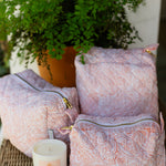 Set of three toiletry bags in printed quilted cotton and lined in plastic. These can hold ALL of your toiletries (even the most beauty-obsessed!), and can also double as packing cubes for the most organized among us.