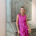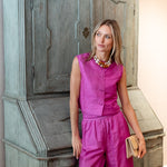 Meet the Blair Top, an ultra-flattering and versatile vest top in 100% Dupioni silk. With a button-up front and slightly cropped and boxy silhouette, she pairs perfectly with any high-waisted style (from a ball skirt to Julia Pants, to a pair of jeans).