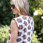 Meet the Slim Top, now in printed canvas fabric and a wardrobe must-have for spring-summer. With a slightly boxy shape and lightly padded capped sleeves, the Slim is the perfectly chic top to pair with the coordinating Gidget Mini Skirt for a set, or jeans (white or blue).