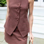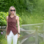 Introducing the Tess Vest, our vest top inspired by classic menswear with a modern and distinctly feminine twist, now in cotton slub. She features a fitted and slightly longer silhouette in the front than back, a v-neck, and silk-covered button front. The Tess Vest pairs perfectly with the Summer Julia Pant or Gidget Cotton Slub for a fun and dare we say *slightly sexy* summer outfit.