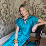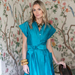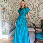 Transport yourself to 1950s Palm Beach in the perfectly vintage-inspired Bettina Dress - a new, floor-length version of our bestselling Betty Dress, designed for more formal festive occasions. The Bettina is universally flattering silhouette (think Sisterhood of the Traveling Dress) with cap sleeves, a neck-elongating collar, cinched tie waist, and an A-line floor-length skirt.
