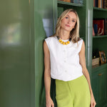 Meet the Blair Top, an ultra-flattering and versatile vest top now in Linen for Spring-Summer. With a button-up front and slightly cropped and boxy silhouette, she pairs perfectly with any high-waisted style (from the coordinating Obe Pant in Linen, to the Bell Pant, to a pair of jeans).