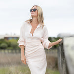 Meet the Bodhi Top - our new oversized linen button-down inspired by men's shirting (kind of like a Linen Husband Shirt). The Bodhi can be worn as a beach coverup for warm weather, an oversized shirt with jeans, or paired with the coordinating Tyler Pareofor a set.