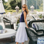 Meet the Circle Skirt, a drop-waist midi skirt in solid cotton poplin. High-waisted to show off your waist, she's super flattering, a little fun, and can be dressed up or down easily. We love her with a Blair Top in poplin or a Tippi. Features concealed zipper closure in back.