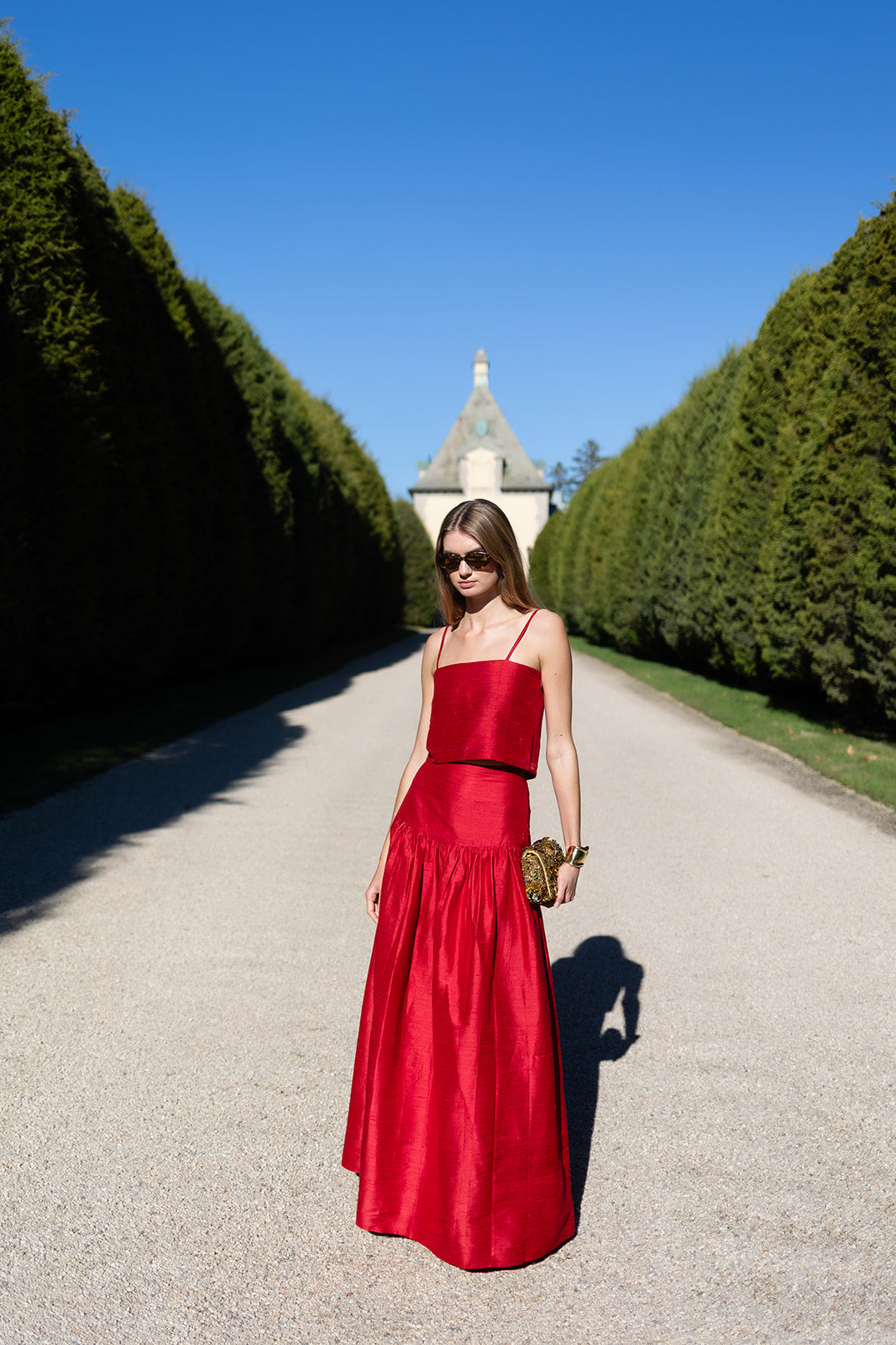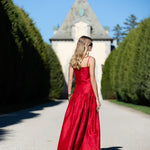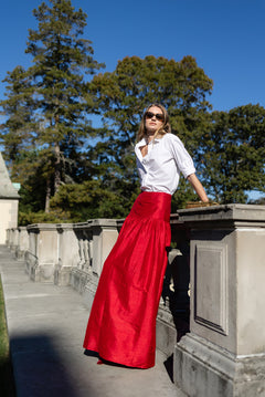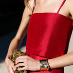 Meet the Circle Top - now in silk Dupioni - a boxy, cropped, spaghetti strap top that compliments the matching Circle Skirt perfectly (but we also love with high-waisted jean). Paired with the Circle Skirt she's designed to drape loosely but be cropped enough to show off your waist. Features button closure down the back, and hidden side zipper.