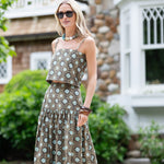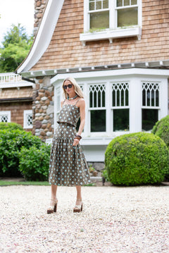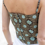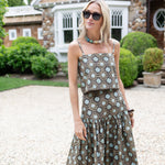 Meet the Circle Top in printed cotton poplin, a boxy, cropped, spaghetti strap top that compliments the matching Circle Skirt perfectly (but we also love with high-waisted jean). Paired with the Circle Skirt she's designed to drape loosely but be cropped enough to show off your waist. Features button closure down the back of the top.