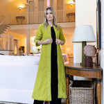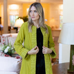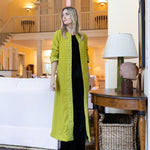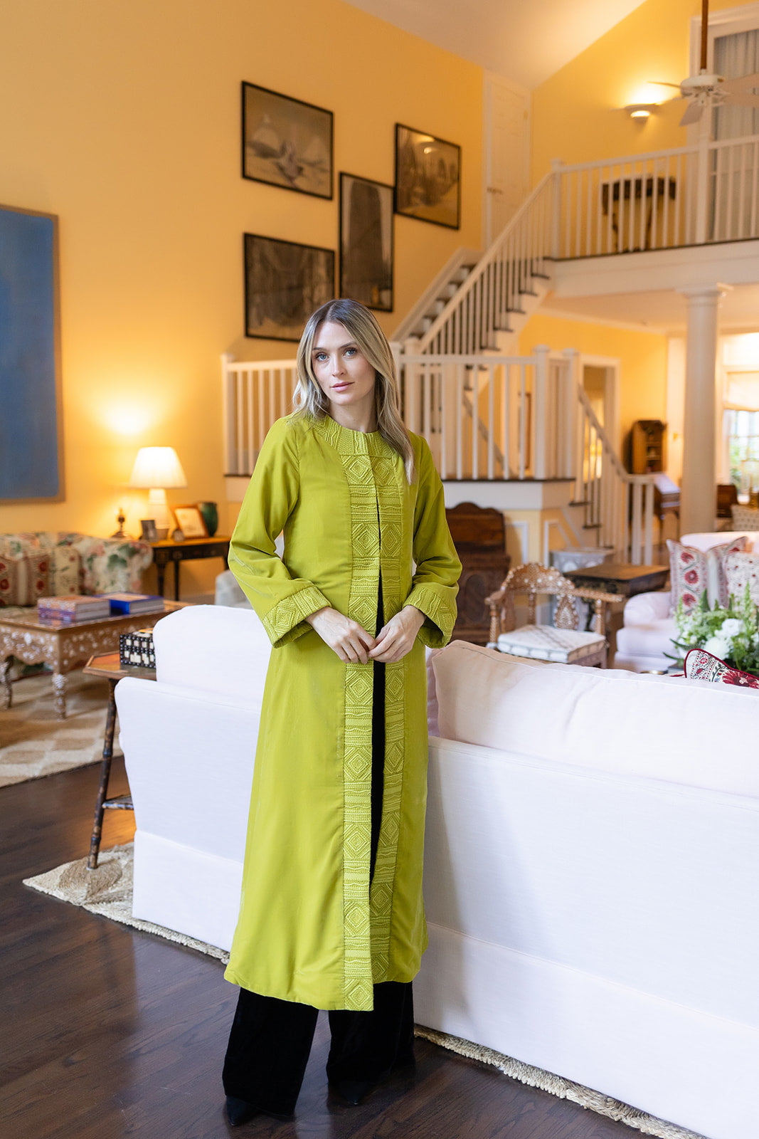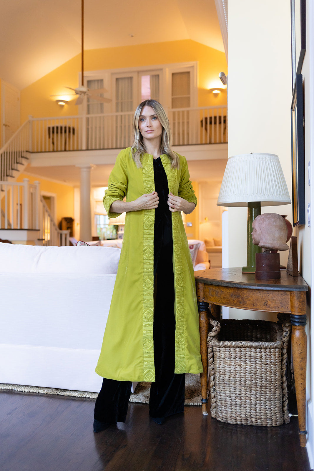 Meet the Iris Duster, your ultimate party party coat. A long velvet coat made with holiday festivities in mind, she's the perfect finishing touch to layer over your festive party outfit (let's be honest, she makes the look). Made of velvet with embroidery and beading detailing on the front closures, sleeve and collar. Hidden hook-and-eye closures at the chest.