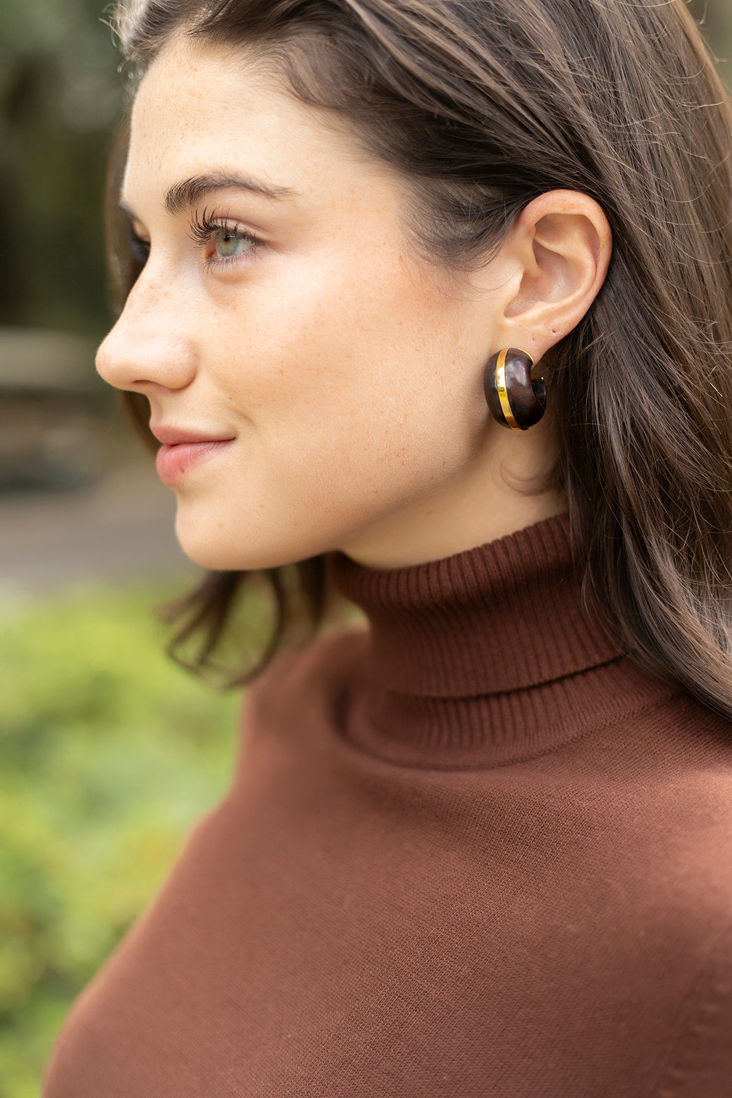 Introducing the Julia Amory x Lizzie Fortunato Halo Hoops in Acacia Wood. With the perfect scale in our favorite coco and gold tonal pairing, the Acacia Wood Halo Hoops are our go-to earrings for both every day and paired with additional accessories for dressing up in the evening.