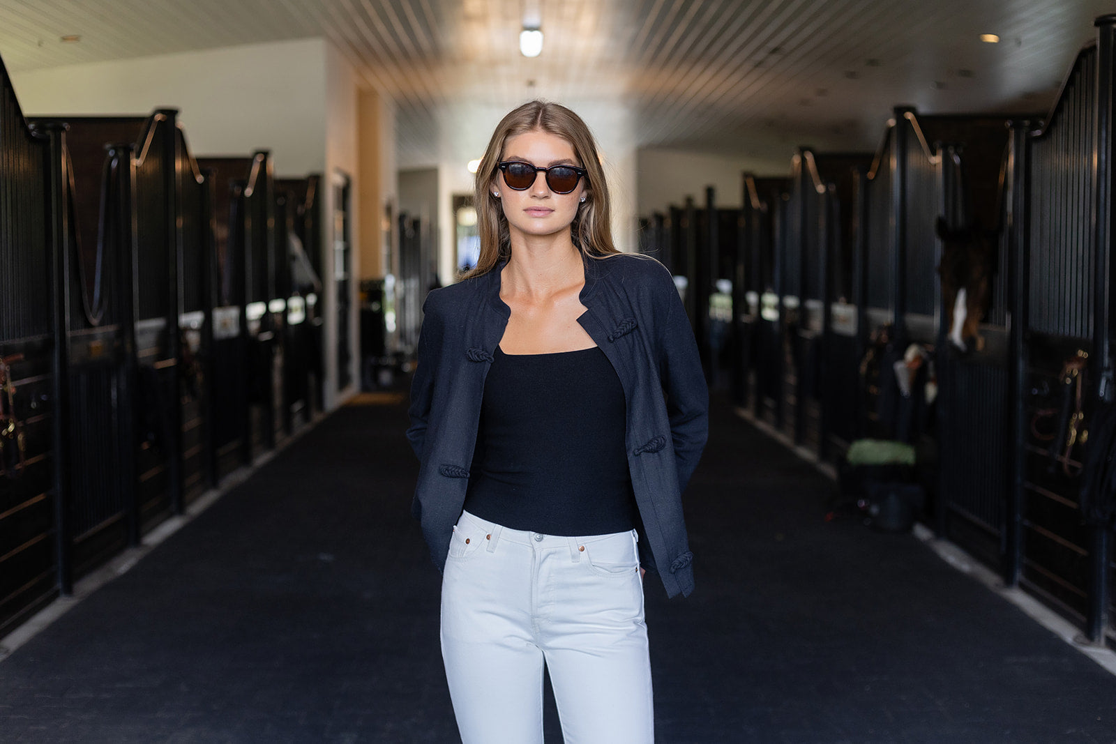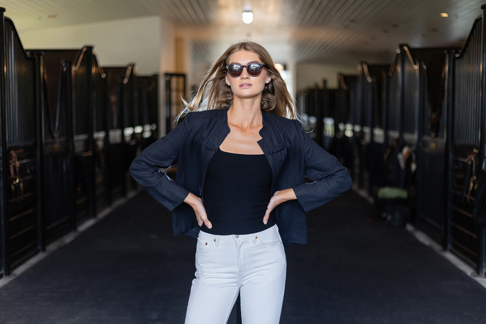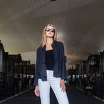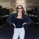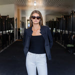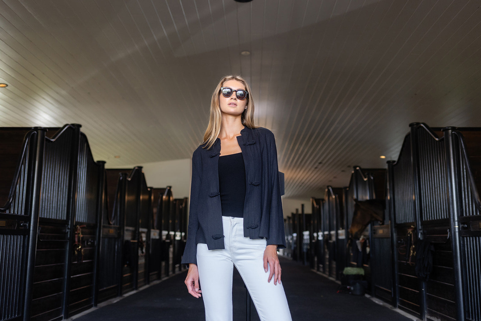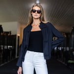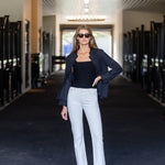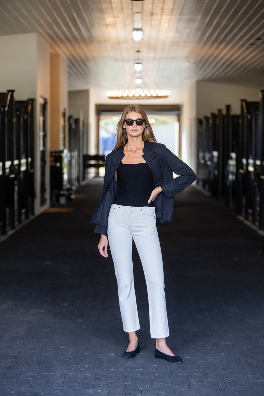 The Mandarin Jacket - now in Linen - is a chic mandarin collared jacket with front knot frog closures. We're loving the Mandarin to spice up a tippi and jeans daytime outfit or with a black cigarette and jewelry for a pulled-together but fun evening look. Hits below hip.