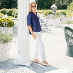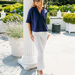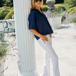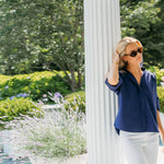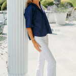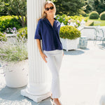 Meet the Marge Shirt, our new relaxed short sleeve button down inspired by the iconic wardrobe of Marge Sherwood (we're partial to Gwyneth's version). Features a drop shoulder, cuffed sleeve, and slightly longer length in the back, she can be tucked in to higher waisted styles or worn untucked for an effortless vibe. Made of 100% cotton poplin.