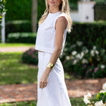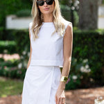 Meet the Slim Top, now in cotton poplin fabric and a wardrobe must-have for spring-summer. With a slightly boxy shape and lightly padded capped sleeves, the Slim is the perfectly chic top to pair with Bell, Babe or Gidget, or jeans (white or blue).