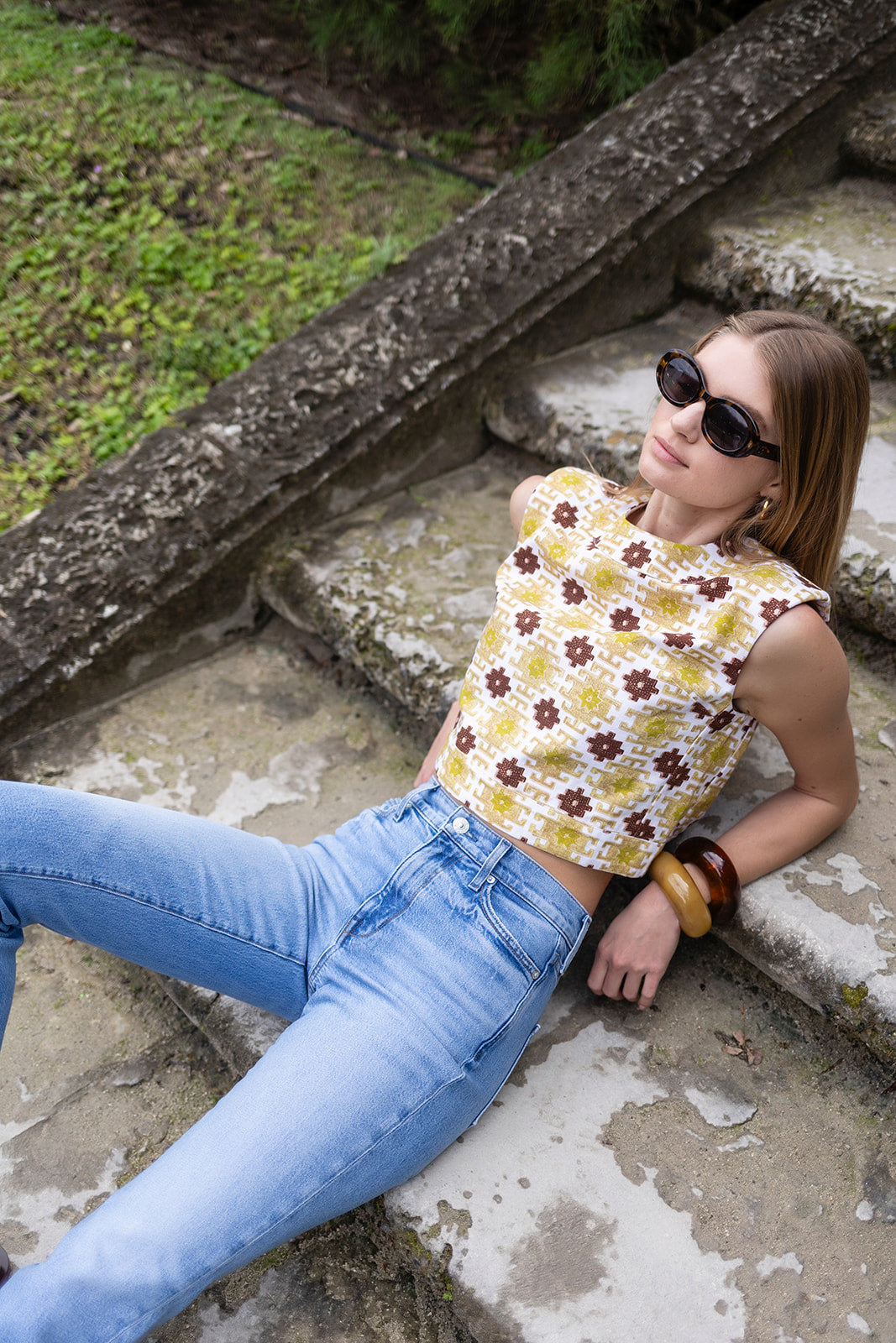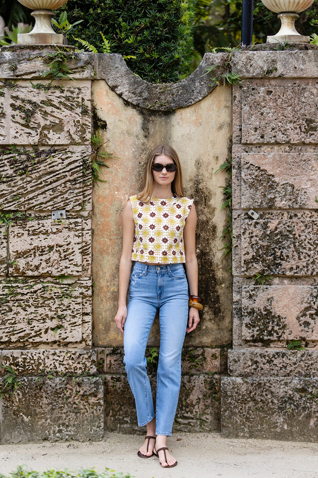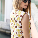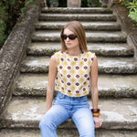 Meet the Slim Top, now in printed canvas fabric and a wardrobe must-have for spring-summer. With a slightly boxy shape and lightly padded capped sleeves, the Slim is the perfectly chic top to pair with the coordinating Kelly Short for a set, or jeans (white or blue).