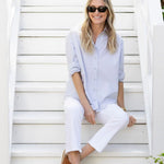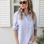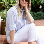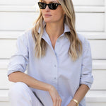 Meet the Carolyn, the only button-down shirt you need in your closet (tbh, you might need multiple). The perfect outfit canvas, she can be worn just as easily for a dressed-up evening look (think CBK), as she can with jeans (or a pareo) for a polished everyday look. The Carolyn has a flattering slightly boxy shape designed for a loose fit.