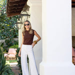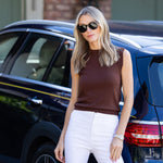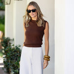 Meet the Tippi Top, our new sleeveless knit shell and the ultimate closet Swiss army knife. She's comfortably soft and fitted enough to dress up and tuck into high-waisted styles. Hits at the hip. Made of cotton viscose blended fabric.
