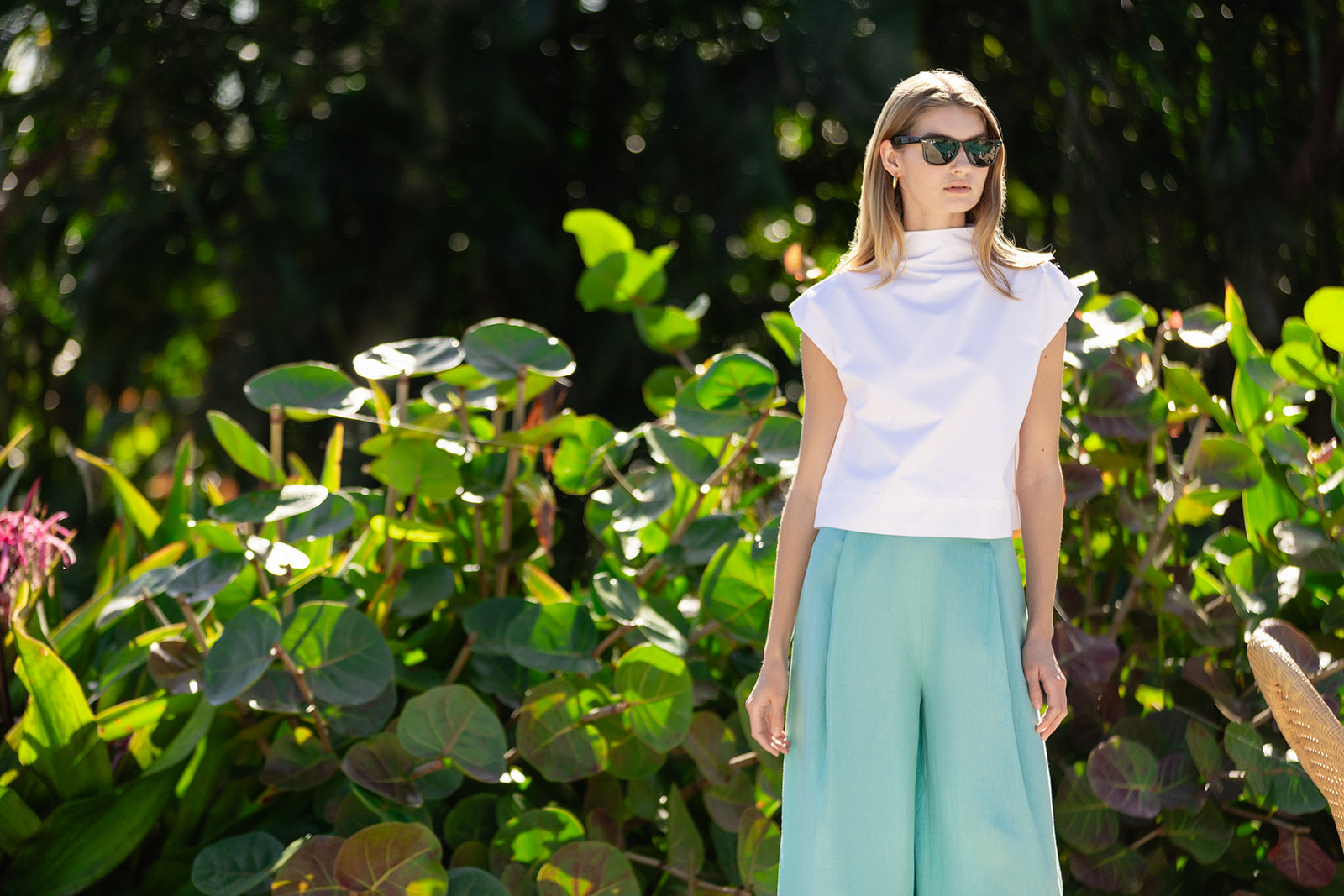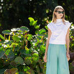 Meet the Tramell Top, a perfectly crisp poplin top for spring dressing. The Tramell's elegant funnel neck, cap sleeve, and clean poplin fabric make her an incredibly versatile piece in your closet - pair with a Bell to elevate a daytime outfit or with dupioni pants and heels for a chic evening ensemble.