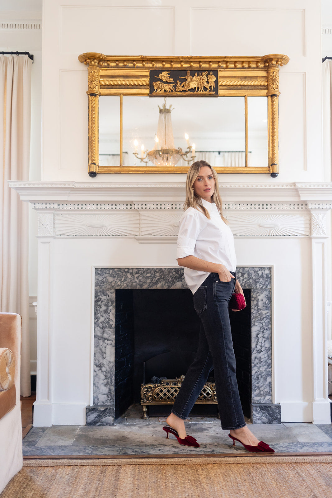 Our new contemporary take on the traditional tuxedo shirt, designed with chouette fall outfits and holiday festivities in mind. Featuring the sharp collar, pleated bib neckline, deep adjustable cuffs of a classic tuxedo shirt. Made of the same sturdy cotton poplin as the Carolyn Shirt.